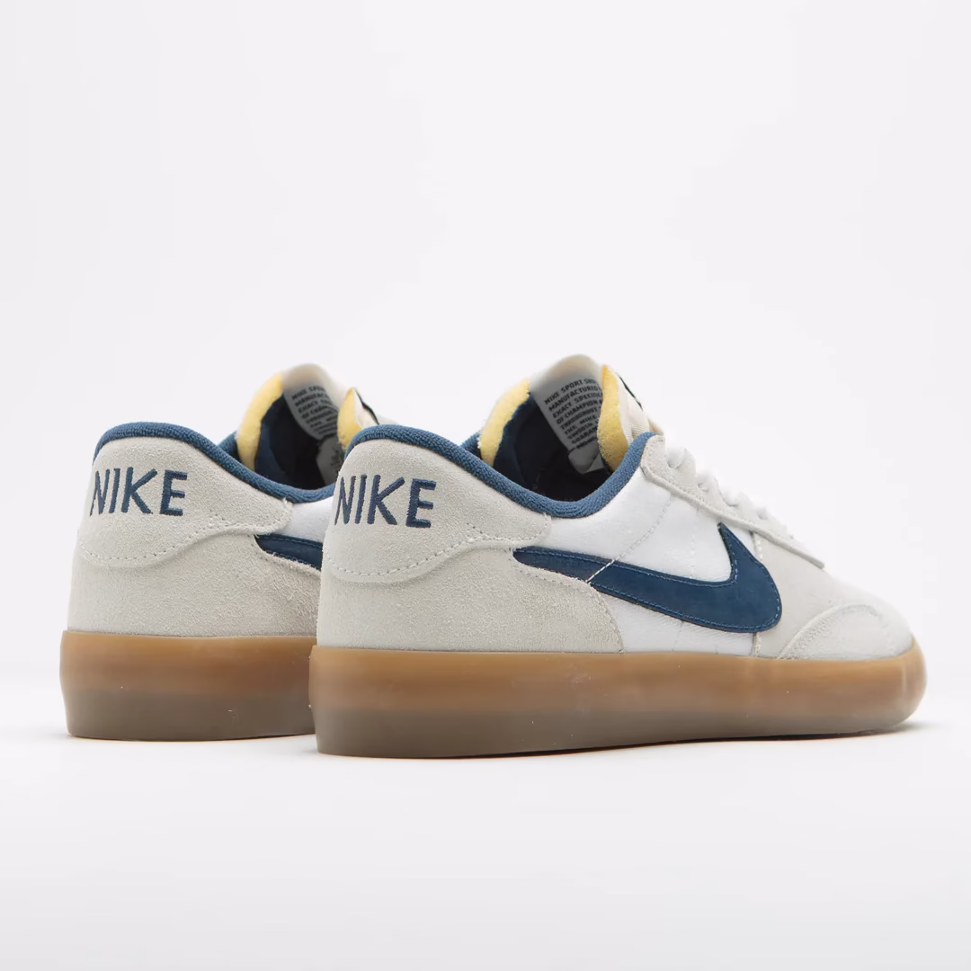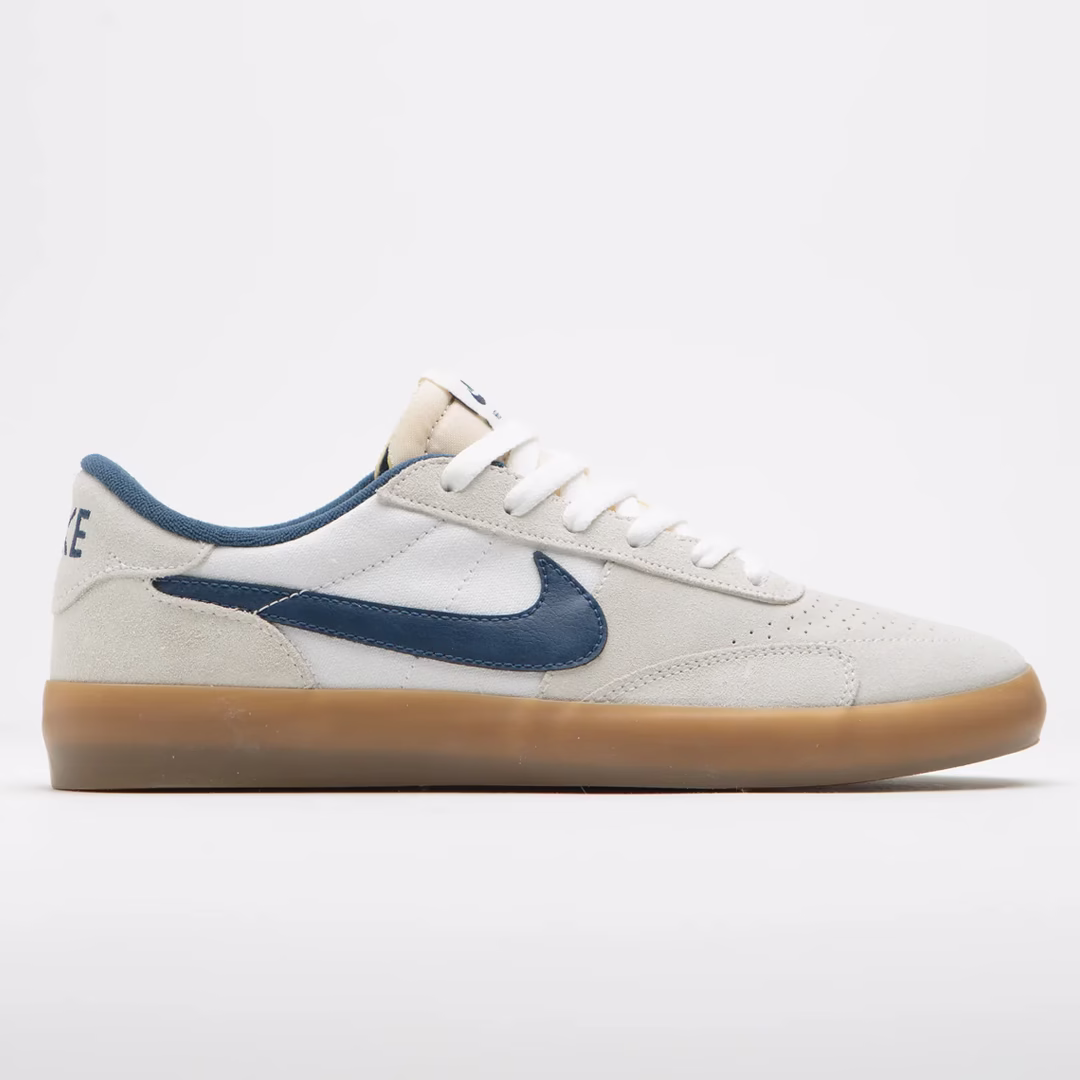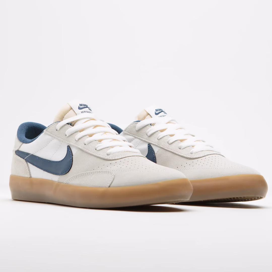 Zapatillas Nike SB Heritage Vulc en blanco cumbre, azul marino, blanco y marrón claro goma. Inspiradas en el archivo, estas Nike SB Heritage Vulc están diseñadas con una parte superior de ante y lona. Con plantillas de espuma acolchada, suela de goma flexible y una construcción vulcanizada clásica, estas Nike SB Heritage Vulc en blanco y azul marino también presentan Swooshes laterales azul marino. Se completan con lengüetas de espuma expuestas, etiquetas tejidas en la lengüeta y un bordado Nike adicional en cada talón.