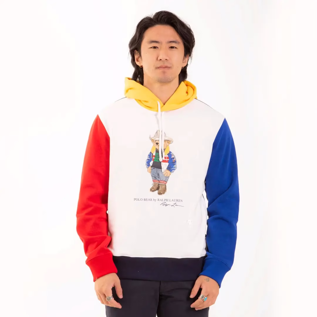 Sudadera con capucha de polar con bloques de color Polo Bear en blanco multi de Polo Ralph Lauren. Esta sudadera de mezcla de algodón presenta a la querida mascota de Polo Ralph Lauren con un vibrante look de capas, puro Polo.