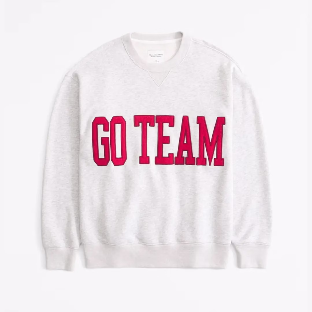 Cómoda sudadera confeccionada con nuestra tela de peso medio softAF MAX y de largo ideal para combinar con leggings, con ancho de pecho holgado, detalle de estampa de Go Team en el pecho, cuello redondo y dobladillo y puños anchos y elastizados.